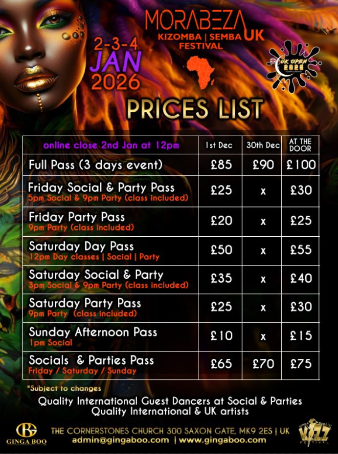 Morabeza UK Kizomba festival focus on KIZOMBA & SEMBA and brought to you by Criola Milton Keynes & Ginga Boo UK Kizomba Festival :