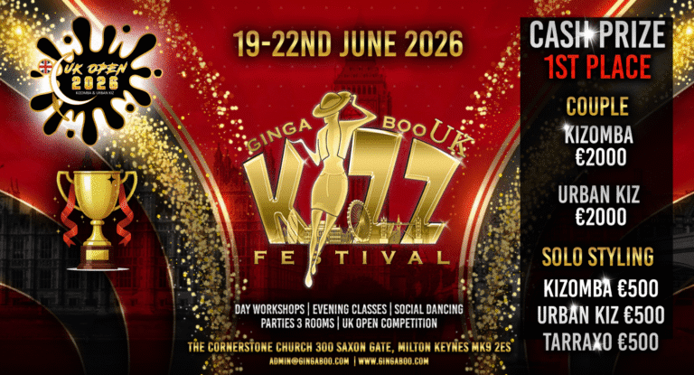 The International UK Open Competition is a Kizomba and Urban Kiz couple competition open to all dancers in the UK and Internationally, includes teachers, social dancers, and students.