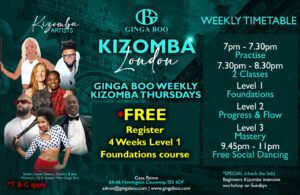 At Ginga Boo UK, we’re launching a never-before-seen 4-Week Fundamentals Course—our bold new pilot program! With a fresh location (Casa Ritmo, Elephant & Castle), new class day, and expanded team, Miss Ginga Boo is pouring 15+ years of Kizomba expertise into this. We’re testing a proven, accelerated method to get more Londoners dancing kizomba confidently ASAP. Normally months to master, we’ll fast-track your basics in just 4 weeks—for FREE—Why? To test the fastest way to onboard absolute beginners into confident Kizomba lovers, flooding London’s scene with skilled dancers and to prove we’re London’s top Kizomba onboarding hub. We’re seeking a small, committed pilot group (no partner needed!) to make breakthroughs happen – spots limited!
